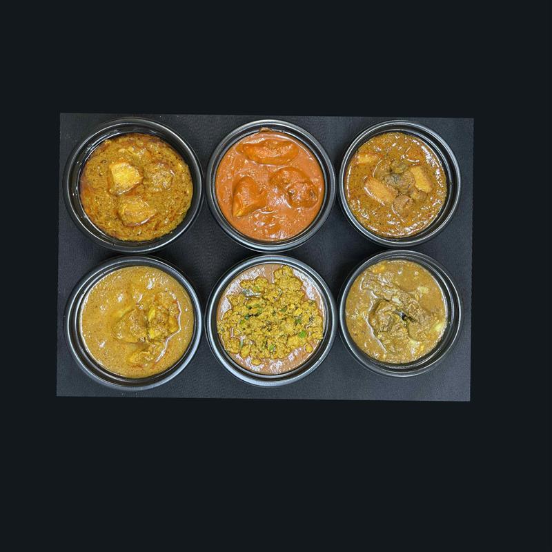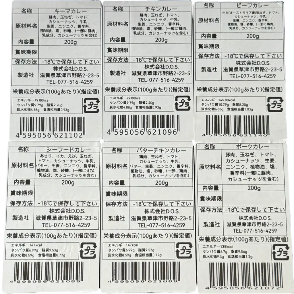 名称 6個セットカレー(ビ-フ、バータチキン、ポーク、チキン,シーフ-ド、キ-マ)