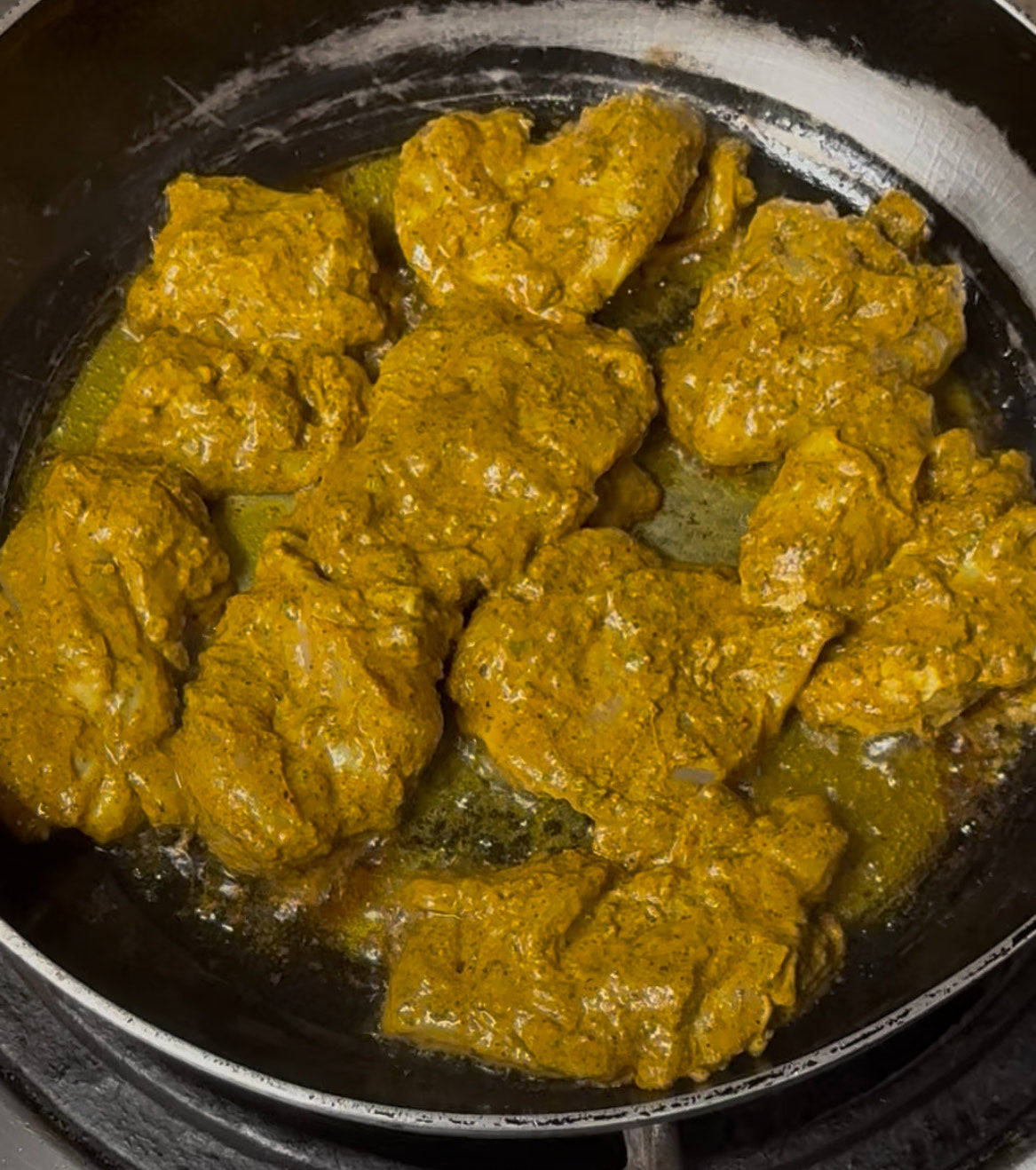 1. 一口に切った鶏もも肉を袋にビリヤニ用スパイス、ヨ-グルト入れても揉み込んで